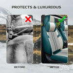 Made of high quality PU leather and treated with a protective coating to make them as durable as they are beautiful. 3mm of foam padding disperses heat, eliminating the struggle of red hot leather and keeping you cool on even the hottest summer days.